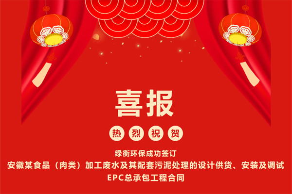• 熱烈祝賀綠衡環(huán)保成功簽訂安徽某食品(肉類)加工廢水及其配套污...